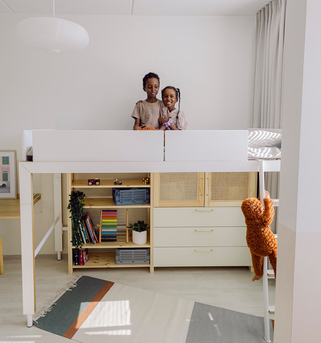 Olemme keränneet viisi vinkkiä lastenhuoneen kalusteratkaisuihin, jotka tukevat lapsen leikkiä ja muokkautuvat aina tarpeen ja elämäntilanteen mukaan.