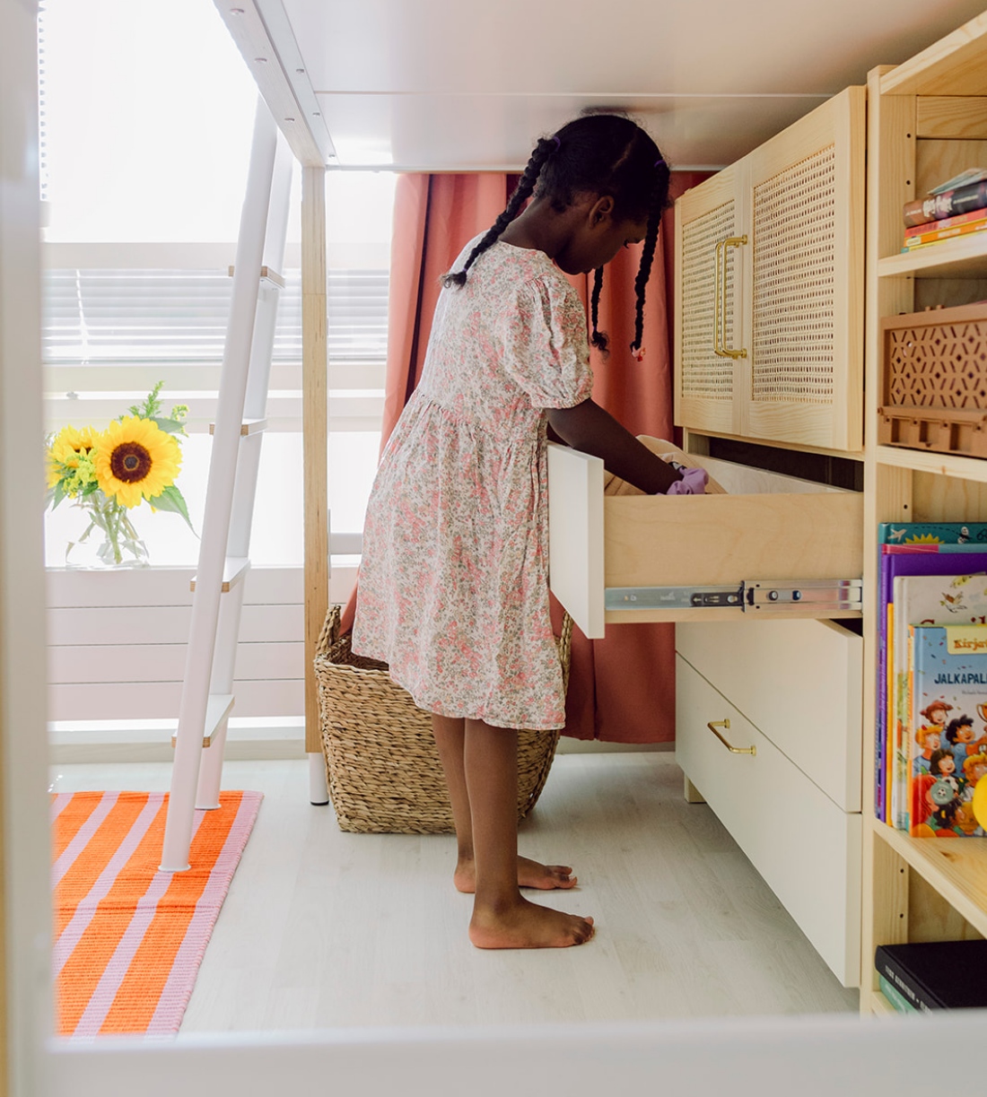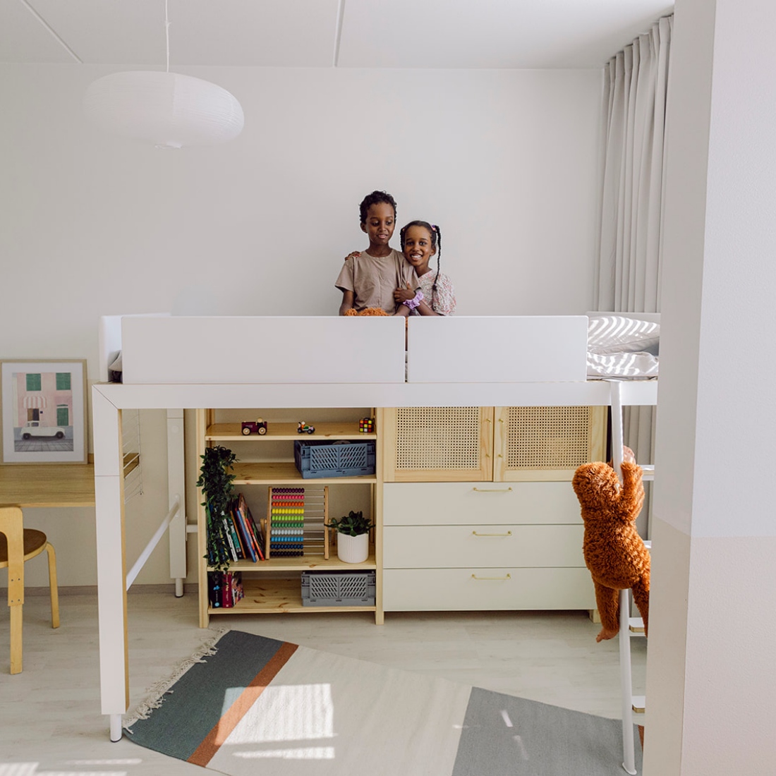 Lastenhuone on paikka, jossa mielikuvitus saa lentää ja arki saa olla vähän sotkuista. Samalla sen tulisi kasvaa lapsen mukana ja kestää aikaa – sekä käytön että tyylin puolesta. Lastenhuoneen järjestystä voi olla vaikeaa ylläpitää hyvien leikkien tiimellyksessä, mutta onneksi siisteyttä tukee oikeanlaiset säilytysjärjestelmät. Lundian ajattomat kalusteet kasvavat lapsen leikkien mukana ja muuntautuvat eri elämänvaiheisiin - lastenhuoneesta nuoren huoneeseen ja opiskelijakämpästä omaan kotiin.