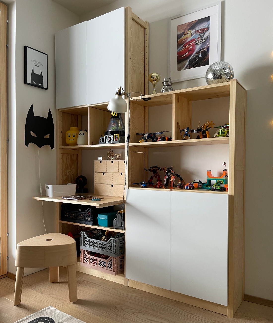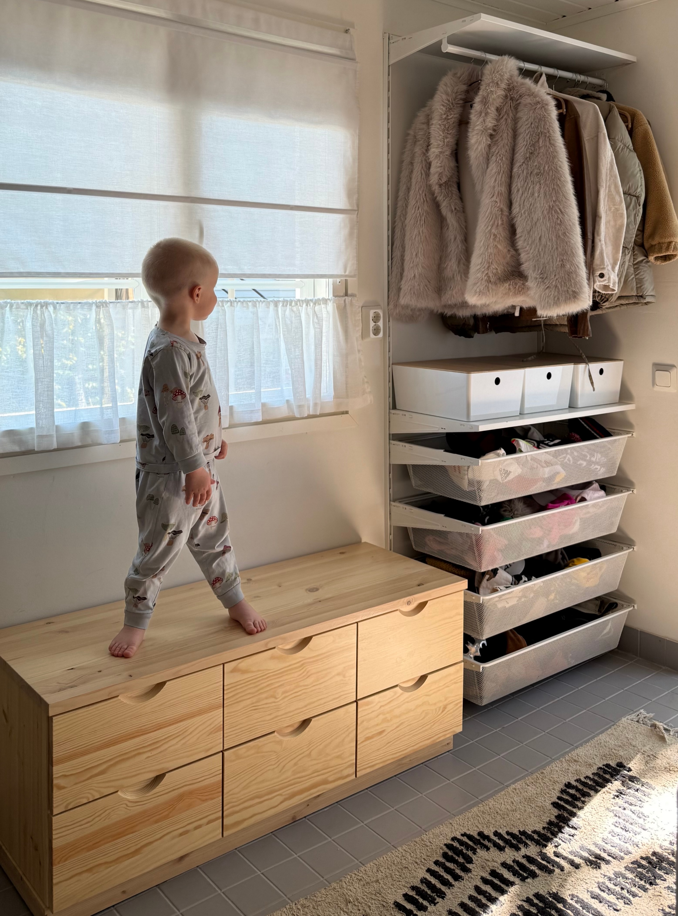 "Vaikka käytännöllisyys ja turvallisuus on lastenhuoneen kalusteissa tärkeintä, mun mielestä kokonaisuus näyttää tosi kivalta, vaikka hyllyn järjestys elää joka päivä. Hylly on myös sen verran laadukas ja monikäyttöinen, että olen varma, että tälle löytyy tulevaisuudessakin aina paikka meidän kodista."