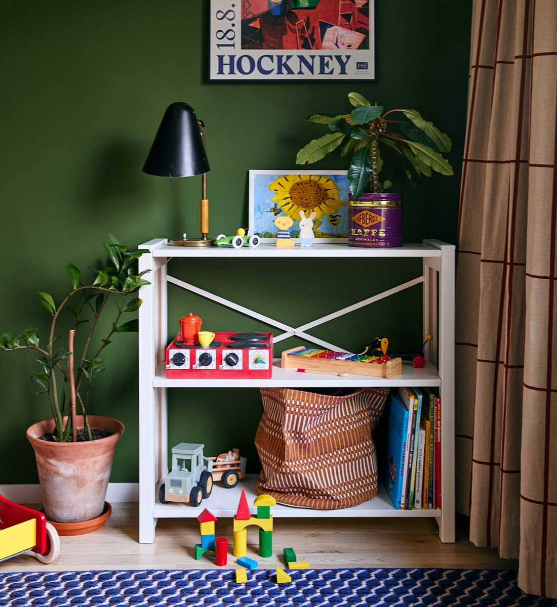 "Lastenhuone on meidän kodin kaunein huone, ainakin silloin kun se on siisti! Ja sen kaunein huonekalu on tämä Lundian Classic -hylly. Haluttiin tässä uudessa asunnossa varmistaa, että leluille ja kirjoille on riittävästi säilytystilaa. Näin ehkä huone pysyisi pidempään siistinä ja kutsuisi leikkiin, kun kaikki ei ole hujan hajan."