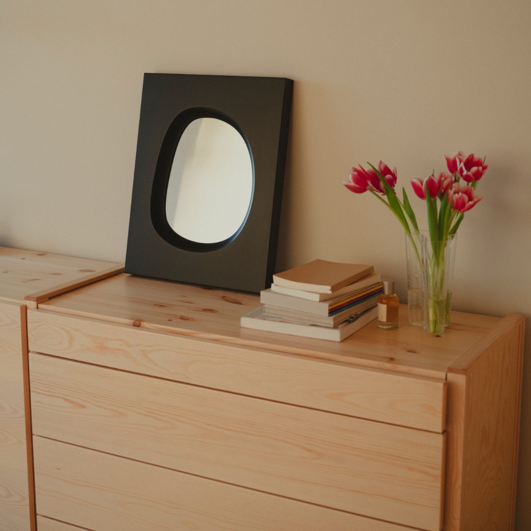 Outlet-päiviltä löydät myös Reeta Laineen suunnitteleman Knot-peilin. Männyn vahvat syykuviot tekevät jokaisesta peilistä oman taideteoksensa. Peili on samaan aikaan sekä käytännöllinen esine että omaleimainen taulu.