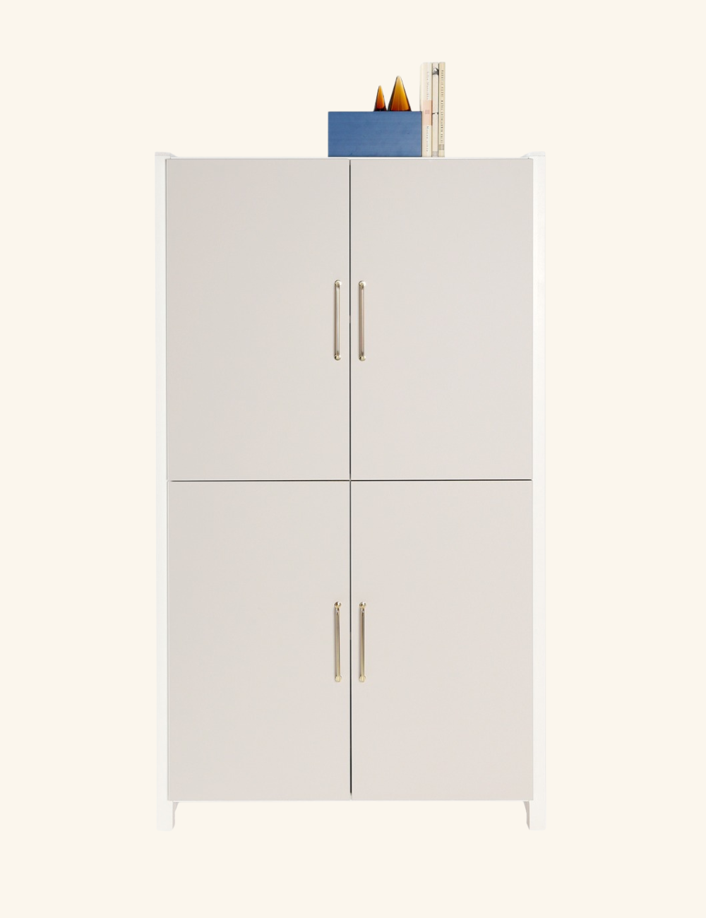 Lundia Classic kaappi on oiva valinta pitämään tavarat järjestyksessä. Kaapissa on neljä kaunista Cashmir-sävyistä ovea. Kaapin takana on valkoinen HDF-takalevy, joka varmistaa pölyn pysymisen poissa hyllyiltä. Ovien takana on yhdet hyllytasot ylä- ja alatasojen lisäksi.