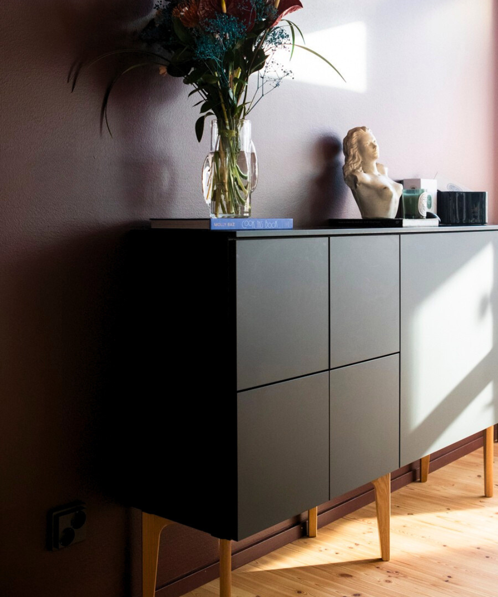 Ovet avautuvat painamalla, jonka vuoksi kaluste ei tarvitse vetimiä.
